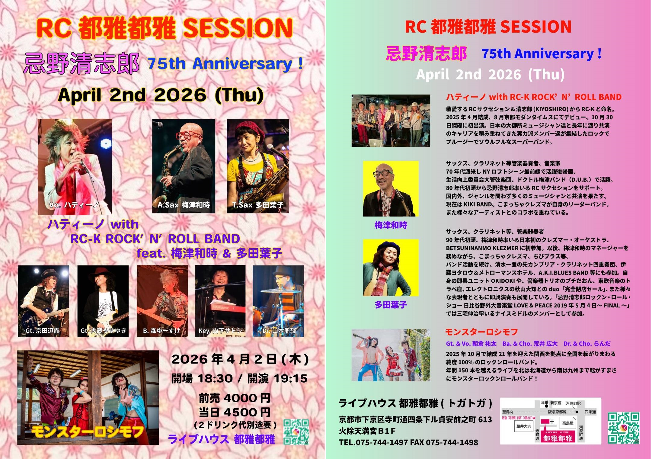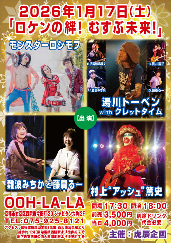 ※モンスターロシモフの出演順は1番目(19:30ごろ~)で30分演奏です。